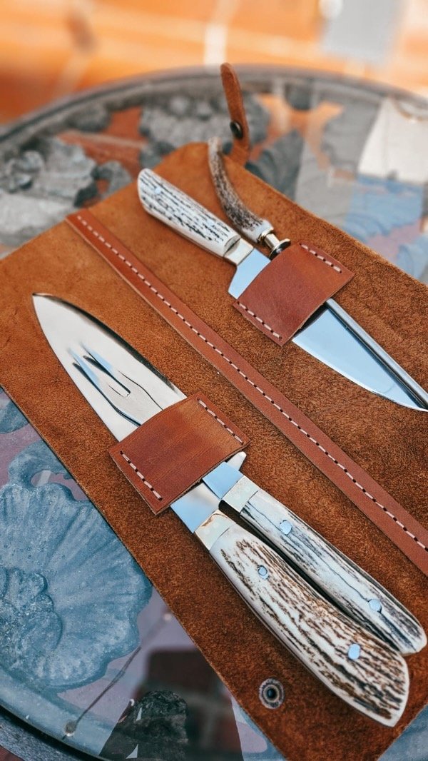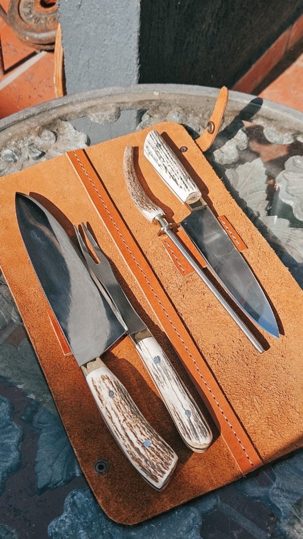 Cuchilla de 20cm, Cuchillo de 16cm, Tenedor de dos puntas